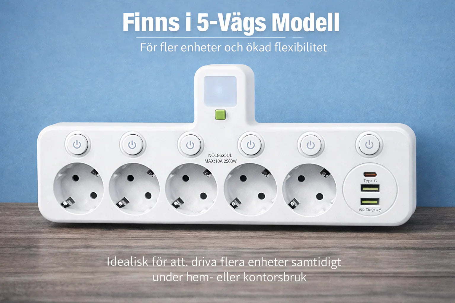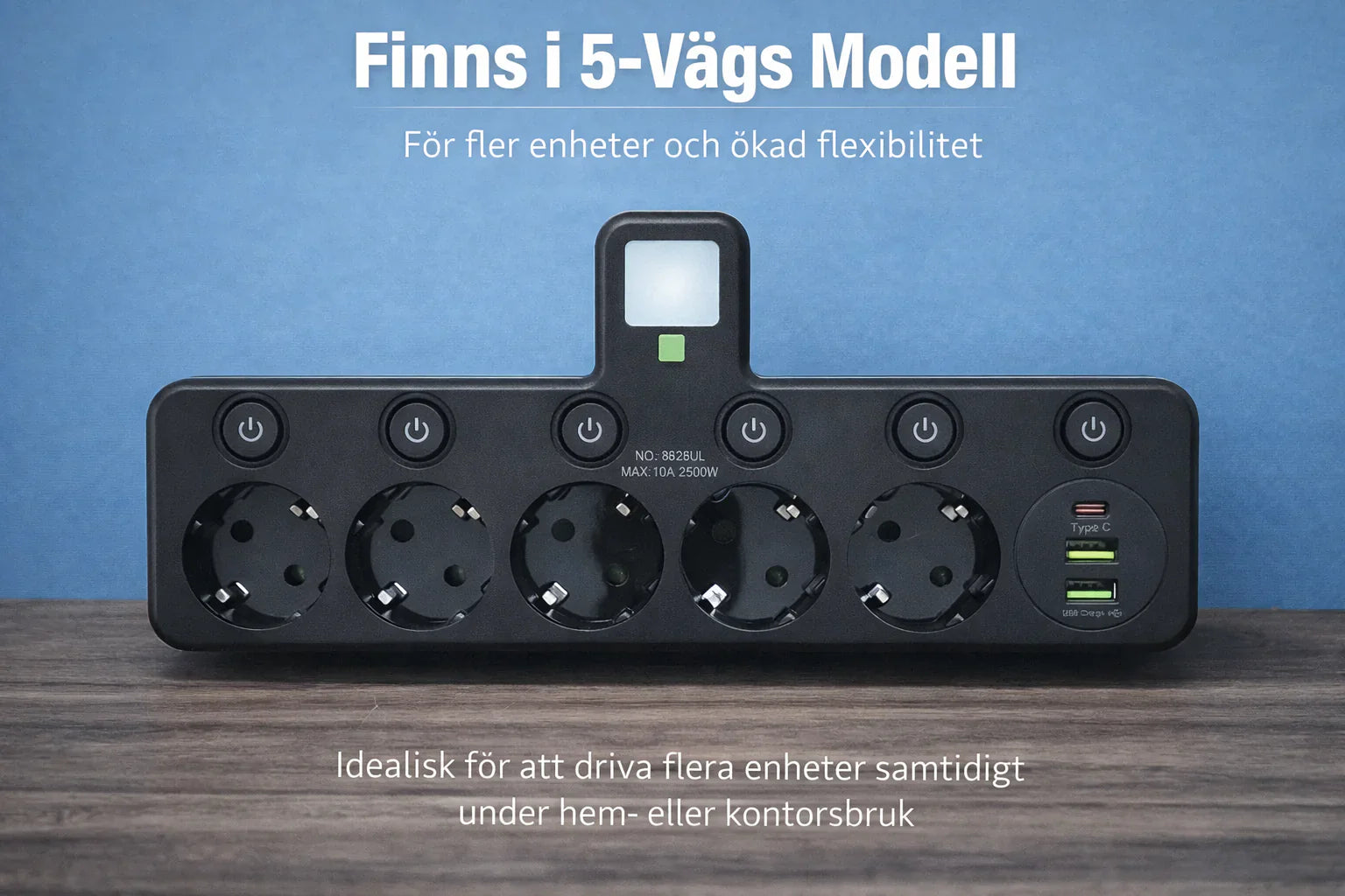 Varje uttag har sin egen strömbrytare och LED-indikator.